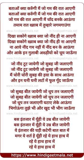 Lyrics of Batao Kya Karungi Mai Jo Gham Ki Raat Aayegi - बताओं क्या करुँगी मैं जो गम की रात आएगी