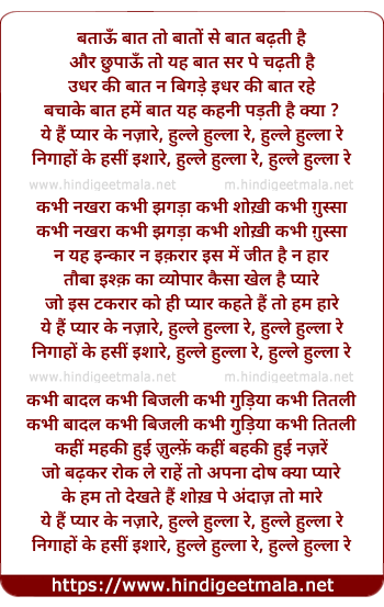 Lyrics of Batau Bat Toh Baton Se Bat (Ye Hai Pyar Ke Nazare, Hulle Hulla Re) - बताऊँ बात तो बातों से बात बढ़ती है