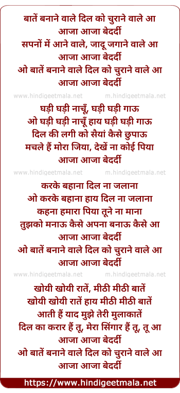 Lyrics of Bate Banane Wale - बातें बनाने वाले दिल को चुराने वाले आ