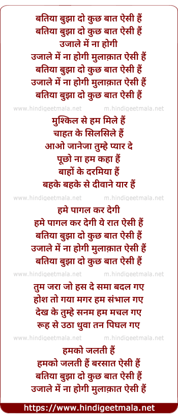 Lyrics of Batiya Bujha Do Kuchh Bat Aisee Hai - बतिया बुझा दो कुछ बात ऐसी हैं