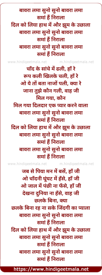 Lyrics of Bawara Lama Suno Suno Bawara Lama - बावरा लमा सुनो सुनो बावरा लमा