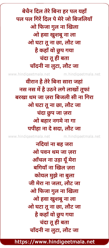 Lyrics of Bechain Dil - बेचैन दिल तेरे बिना हर पल यहाँ