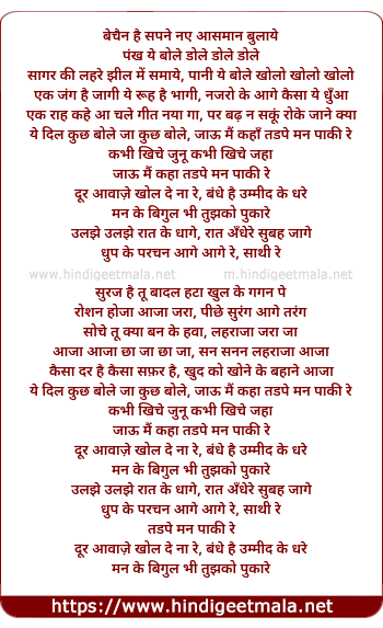 Lyrics of Bechain Hai Sapne Naye Aasman Bhulaye - बेचैन है सपने नए आसमान बुलाये
