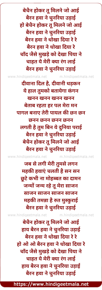 Lyrics of Bechain Hokar Tu Milane Jo Aayi - बेचैन होकर तू मिलने जो आई