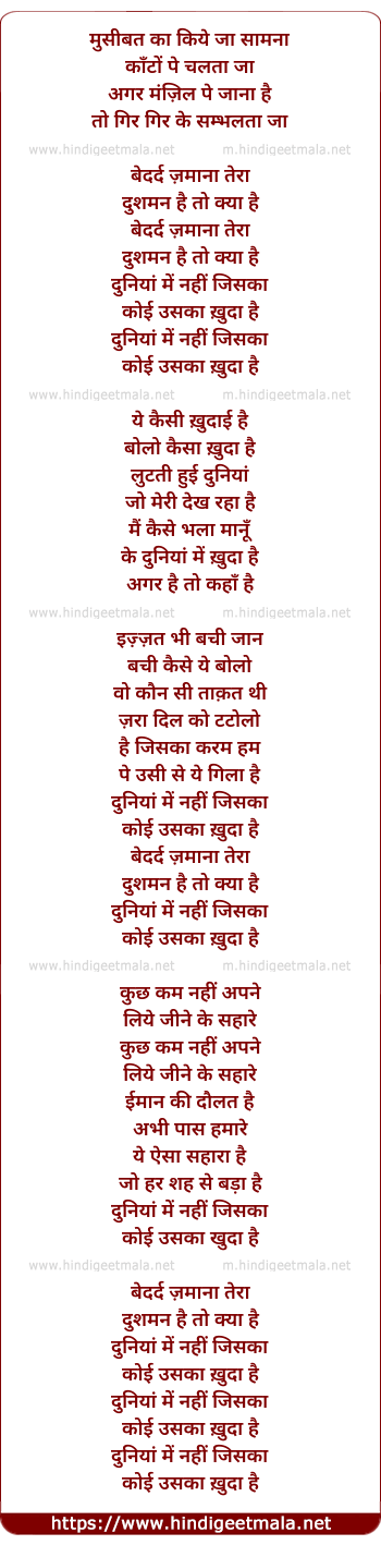 Lyrics of Bedard Zamana Teraa Dushaman Hai To Kya Hai - बेदर्द जमाना तेरा दुश्मन है तो क्या है