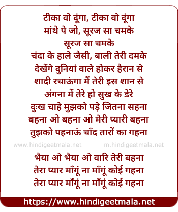 Poetic Translation - Lyrics of Behna O Behna (Sad) - टीका वो दूंगा, टीका वो दूंगा