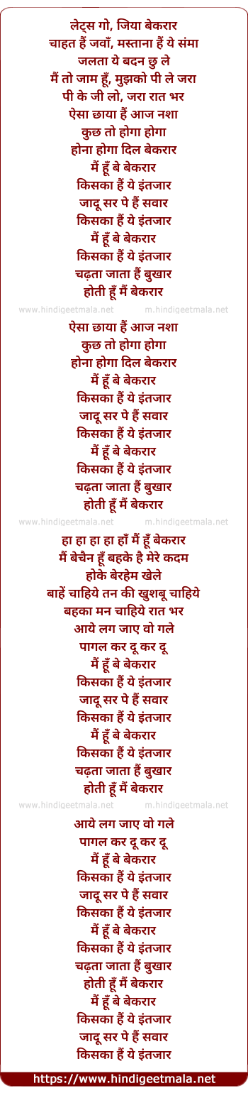 Lyrics of Bekaraar (Shweta Shetty) - लेट्स गो, जिया बेकरार
