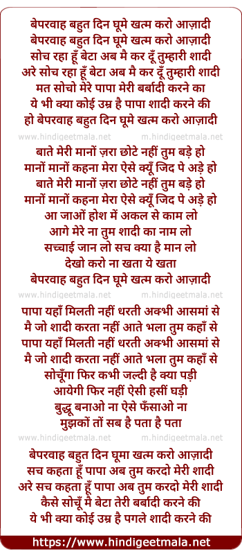 Lyrics of Beparwah Bahut Din Ghume - बेपरवाह बहुत दिन घूमे