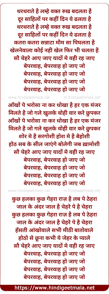 Lyrics of Beparwah, Beparwah Ho Jaaye Jo - बेपरवाह, बेपरवाह हो जाए जो