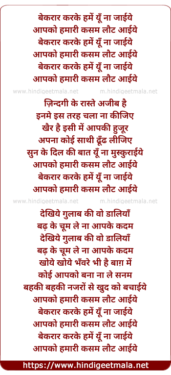 Lyrics of Beqarar Karke Humein - बेकरार करके हमें यूँ ना जाईये