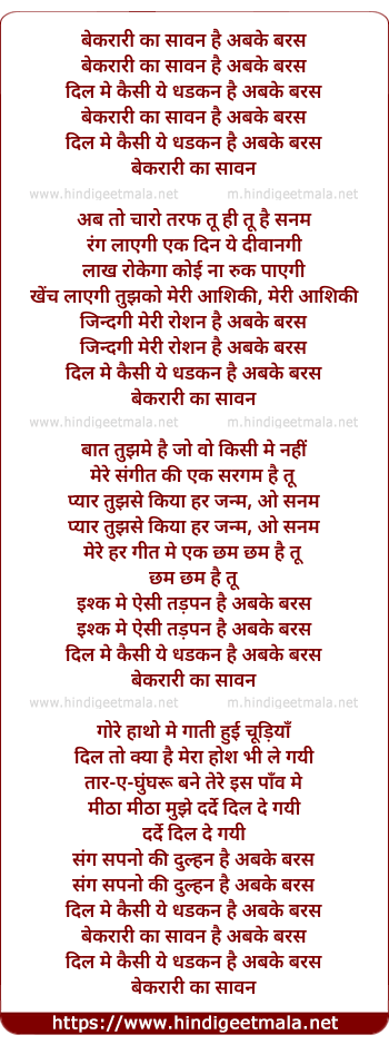 Lyrics of Beqarari Ka Saawan Hai - बेकरारी का सावन है