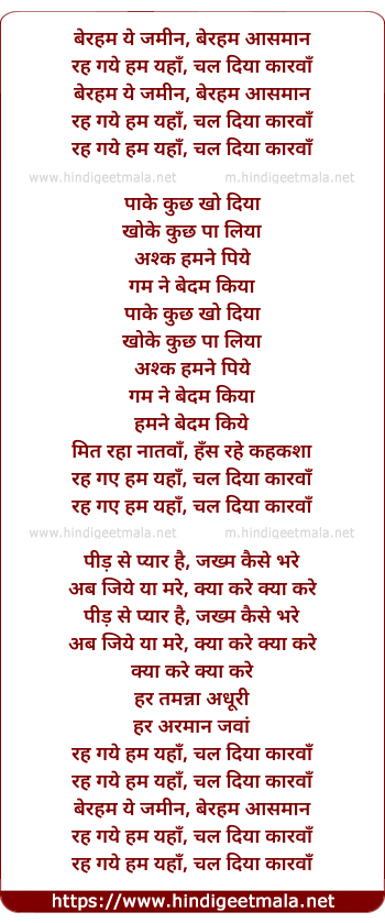 Lyrics of Bereham Ye Zamin, Bereham Aasmaan - बेरहम ये जमीन, बेरहम आसमान
