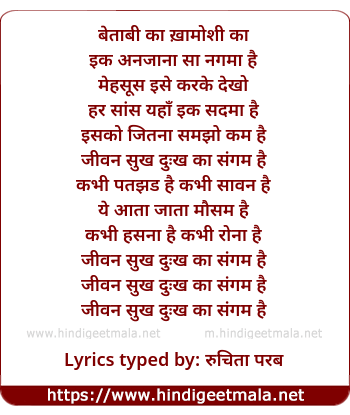 Lyrics of Betabi Ka Khamoshi Ka Ek Anjana - बेताबी का ख़ामोशी का एक अनजाना