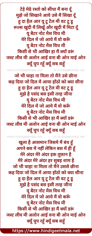 Poetic Translation - Lyrics of You Better Not Mess With Me - यू बैटर नोट मैस विध मी