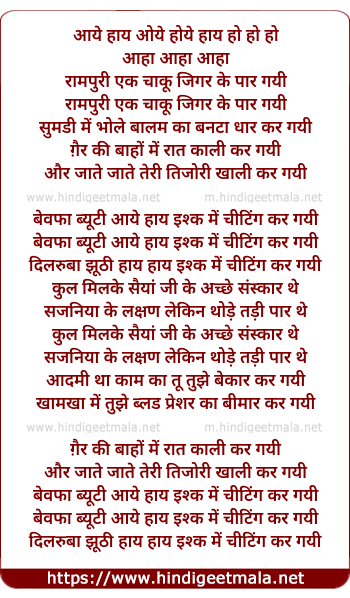 Lyrics of Bewafa Beauty Ishq Mein Cheating Kar Gayi - बेवफा ब्यूटी इश्क में चीटिंग कर गयी