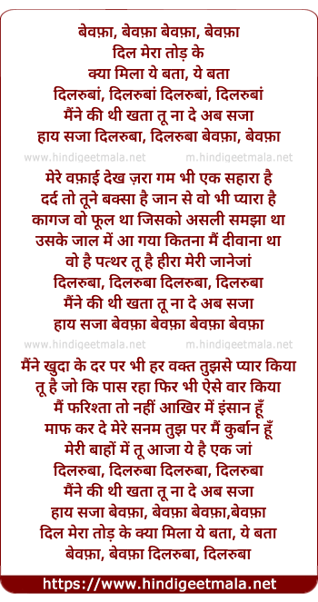 Lyrics of Bewafa Bewafa Dilruba Dilruba - बेवफ़ा बेवफ़ा दिलरुबां दिलरुबां