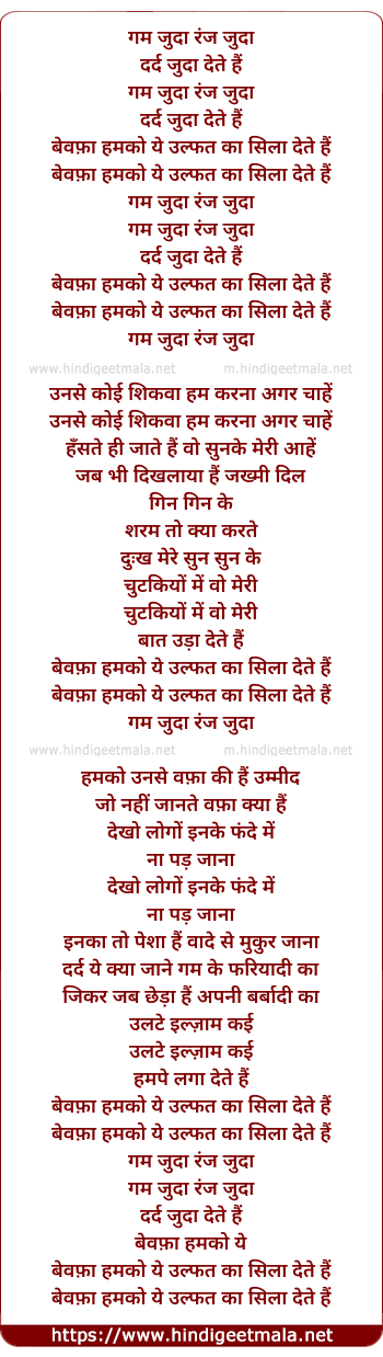 Poetic Translation - Lyrics of Bewafa Humko Ye Ulfat Ka Sila Dete Hai - बेवफ़ा हमको ये उल्फत का सिला देते हैं