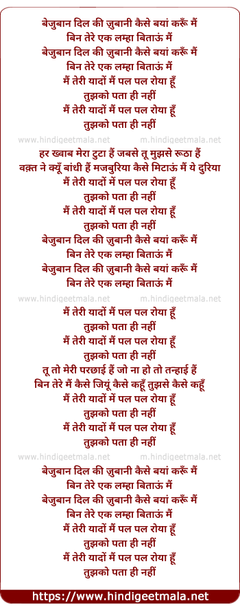 Lyrics of Bezuban Dil Ki - बेजुबान दिल की