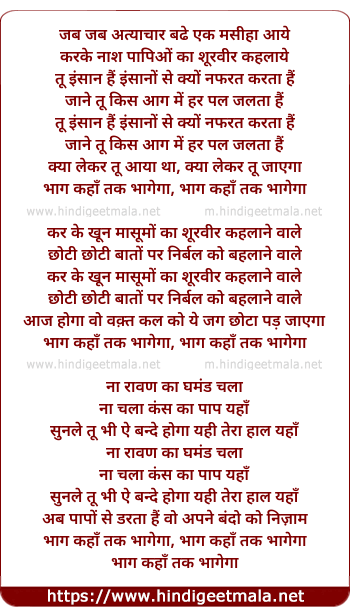 Lyrics of Bhaag Kahan Tak Bhagega - भाग कहाँ तक भागेगा