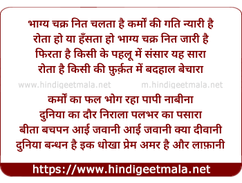 Lyrics of Bhaagy Chakr Nit Chalataa Hai - भाग्य चक्र नित चलता है कर्मों की गति न्यारी है