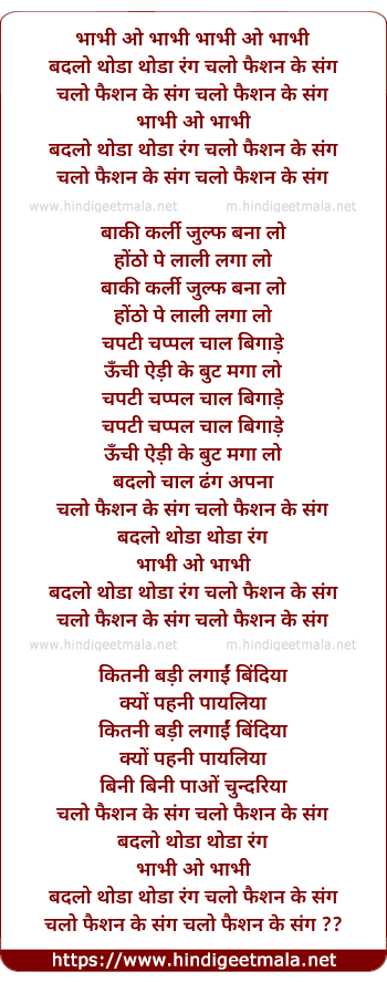 Lyrics of Bhabhi Oh Bhabhi - भाभी ओ भाभी