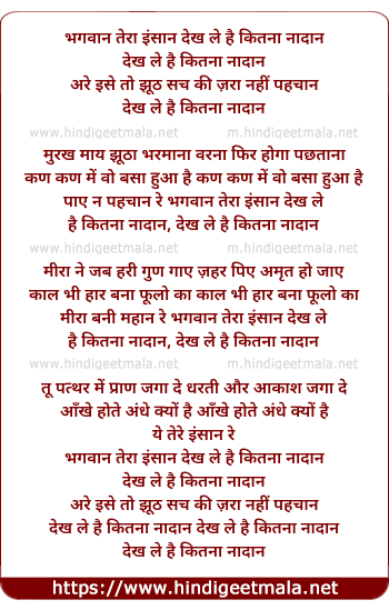 Lyrics of Bhagwaan Tera Insaan Dekh Le - भगवान तेरा इंसान देख ले