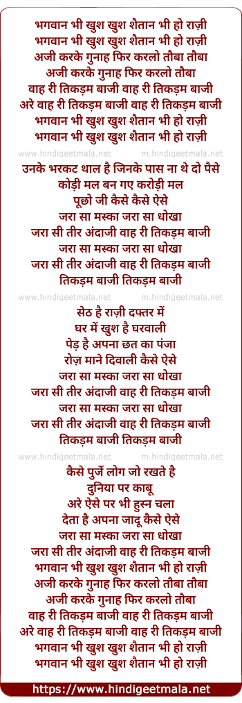Lyrics of Bhagwan Bhi Khush Khush, Shaitan Bhi Razi - भगवान भी खुश खुश, शैतान भी राज़ी