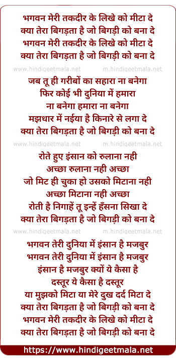 Lyrics of Bhagwan Meri Taqdeer Kya Tera Bigadta Hai - भगवन मेरी तकदीर क्या तेरा बिगड़ता है