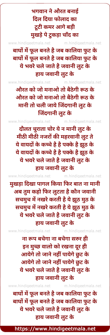 ye bhavare chale jaate hai jawaani lut ke