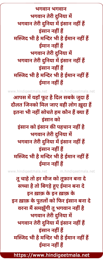 Lyrics of Bhagwan Teri Duniya Me Insaan Nahi Hai - भगवान तेरी दुनिया में इंसान नहीं हैं