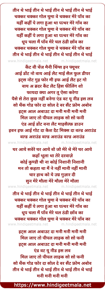 Lyrics of Bhaai Ke Chakkar, Teen The Bhai - भाई के चक्कर, तीन थे भाई
