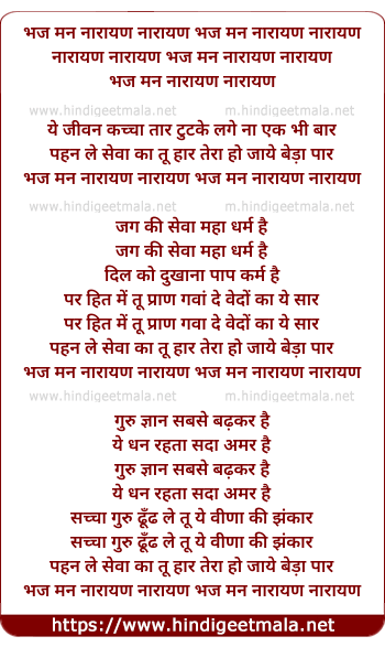 Lyrics of Bhaj Mann Narayan Narayan - भज मन नारायण नारायण
