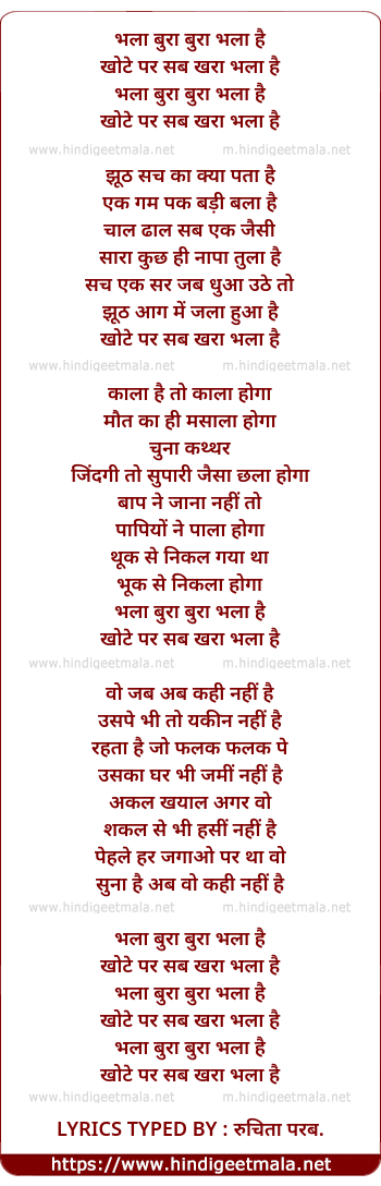 Lyrics of Bhala Bura - भला बुरा
