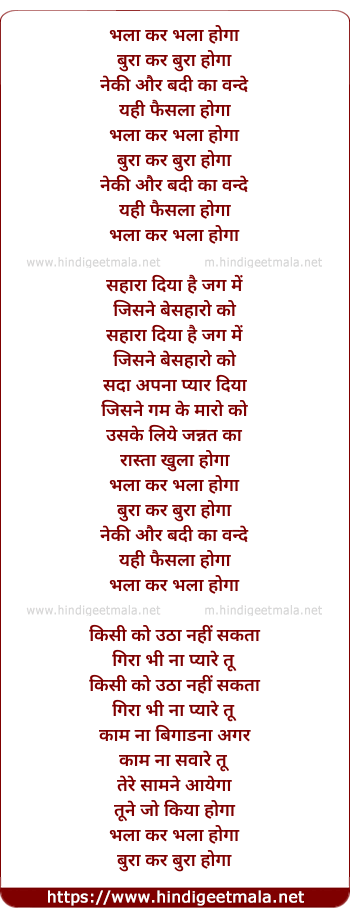 Poetic Translation - Lyrics of Bhala Kar Bhala Hoga (Part - 1) - भला कर भला होगा
