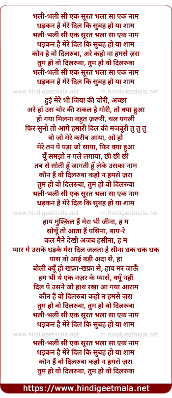 Lyrics of Bhali Bhali Si Ek Surat Bhalaa Saa Ek Naam - भली भली सी एक सूरत भला सा एक नाम