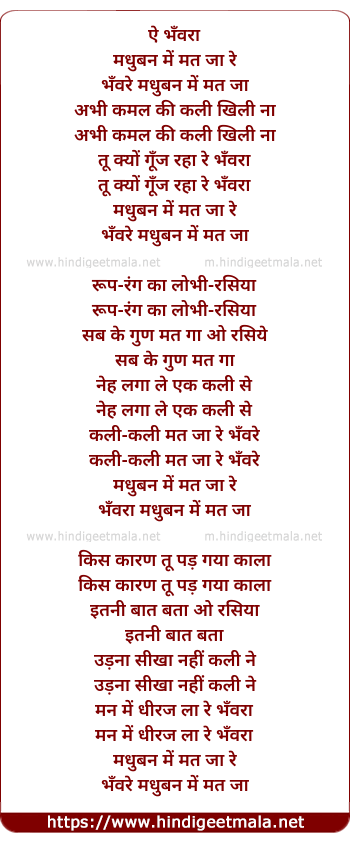 Lyrics of Bhanwaraa Madhuban Men Mat Jaa - ऐ भँवरा