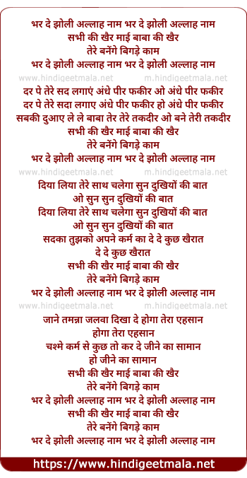 Lyrics of Bhar De Jholi Allah Naam - भर दे झोली अल्लाह नाम