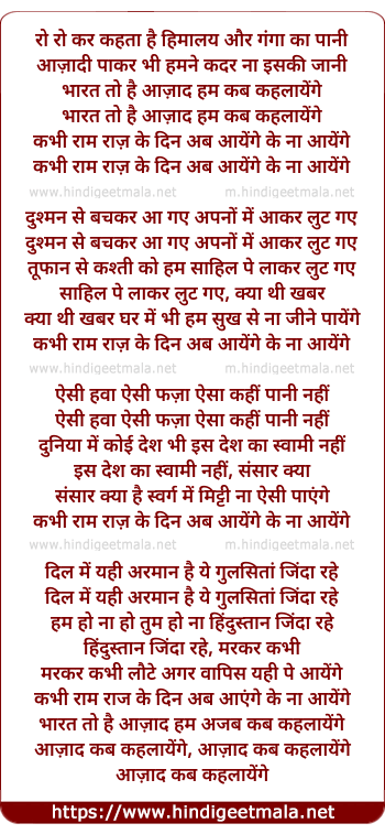 Lyrics of Bharat To Hai Azad - भारत तो है आज़ाद