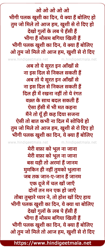 Lyrics of Bheegi Palak (Duet) - ओ ओ ओ ओ ओ