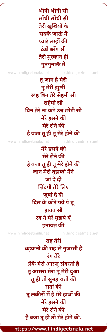 Lyrics of Bheeni Bheeni Si - भीनी भीनी सी