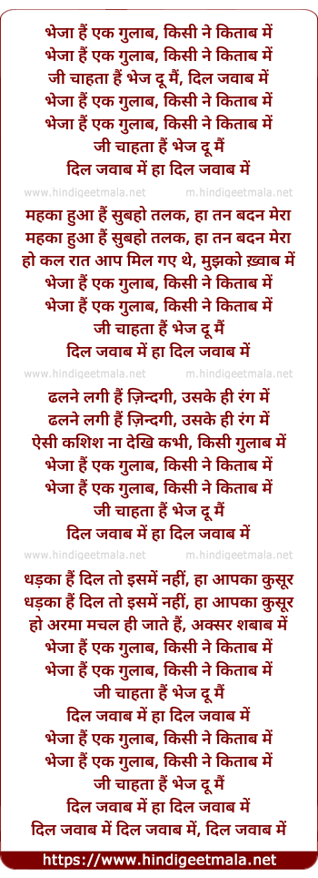 Lyrics of Bheja Hai Ik Gulaab Kisi Ne Kitab Me - भेजा हैं एक गुलाब किसी ने किताब में