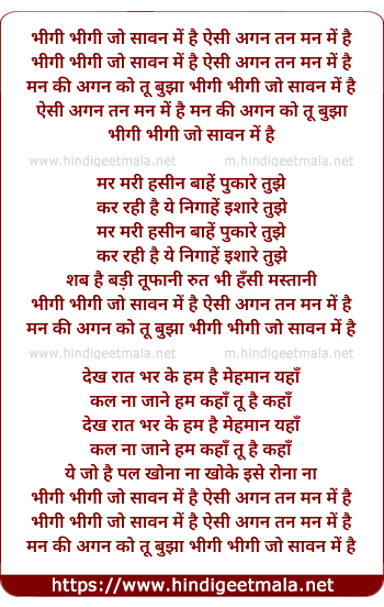 Lyrics of Bhige Bhige Jo Sawan Me Hai - भीगी भीगी जो सावन में है