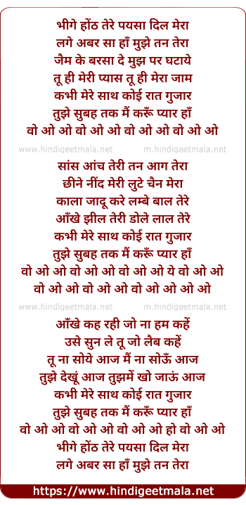 Lyrics of Bhige Honth Tere Pyasa Dil Mera - भीगे होंठ तेरे प्यासा दिल मेरा
