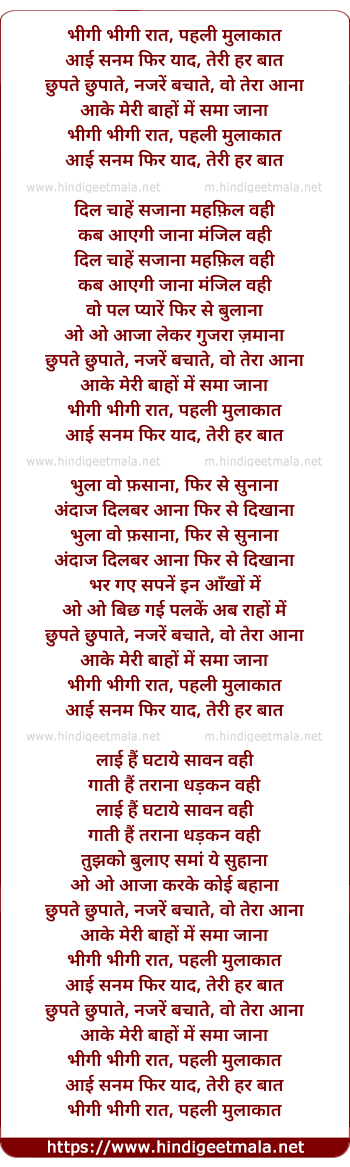 Lyrics of Bhigi Bhigi Raat - भीगी भीगी रात, पहली मुलाकात