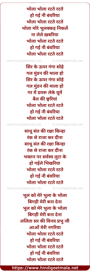 Lyrics of Bhola Bhola Ratate Rate - भोला भोला रटते रटते