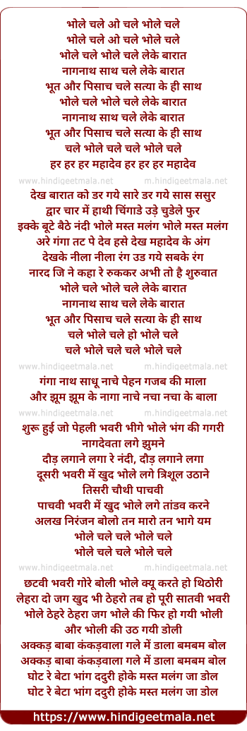 Lyrics of Bhole Chale Leke Baraat - भोले चले लेके बारात