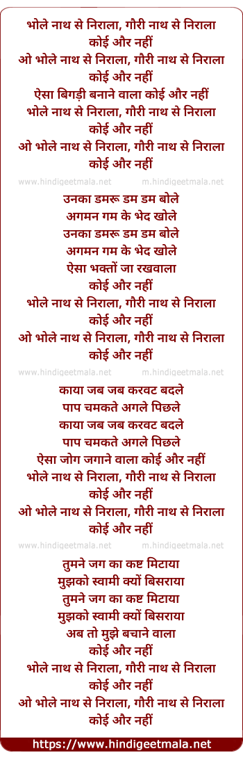 Lyrics of Bhole Nath Se Nirala - भोले नाथ से निराला
