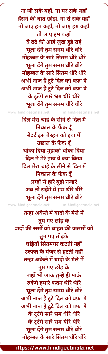 Lyrics of Bhula Denge Tumko Sanam Dhire Dhire - भूला देंगे तुमको सनम धीरे धीरे