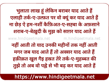 Lyrics of Bhulaataa Laakh Hun Lekin Baraabar Yaad Aate Hain - भुलाता लाख हूं लेकिन बराबर याद आते हैं