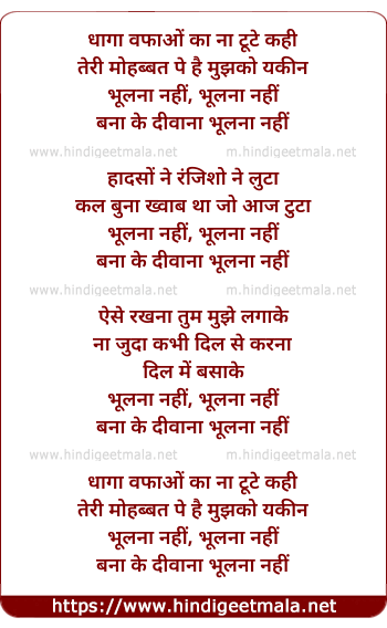 Lyrics of Bhulana Nahee Bhulana Nahee - 2 - भुलाना नहीं भुलाना नहीं